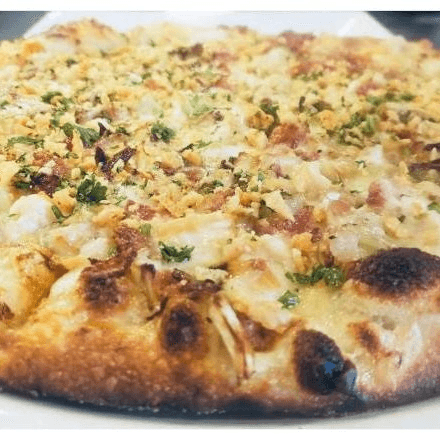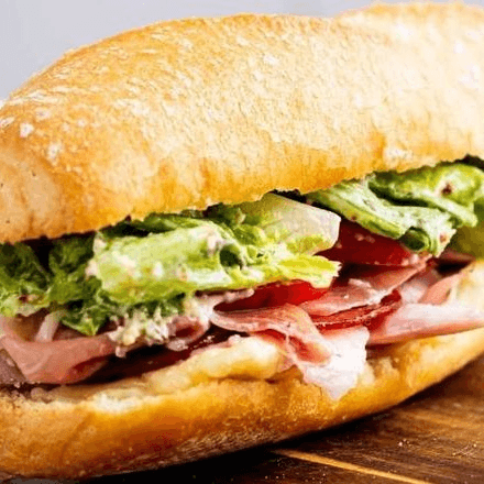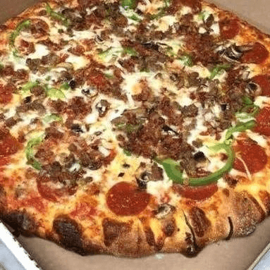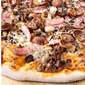 Bacon, pepperoni, sausage, onions, mushrooms & peppers